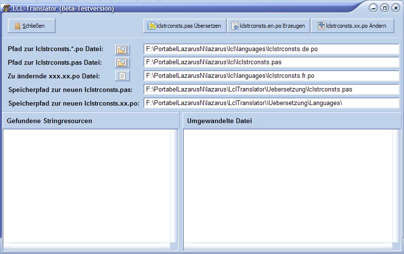 1. Zuerst wird auf dieser Basis die lclstrconsts.pas neu erzeugt. Alle in der lclstrconsts.de.po gefundenen Resourcenstrings werden in der lclstrconsts.pas durch den zugehörigen deutschen String ersetzt.