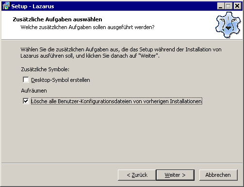 - Das Setup von Lazarus ausgeführt und dabei gesagt er soll die alte Konfigurationen löschen