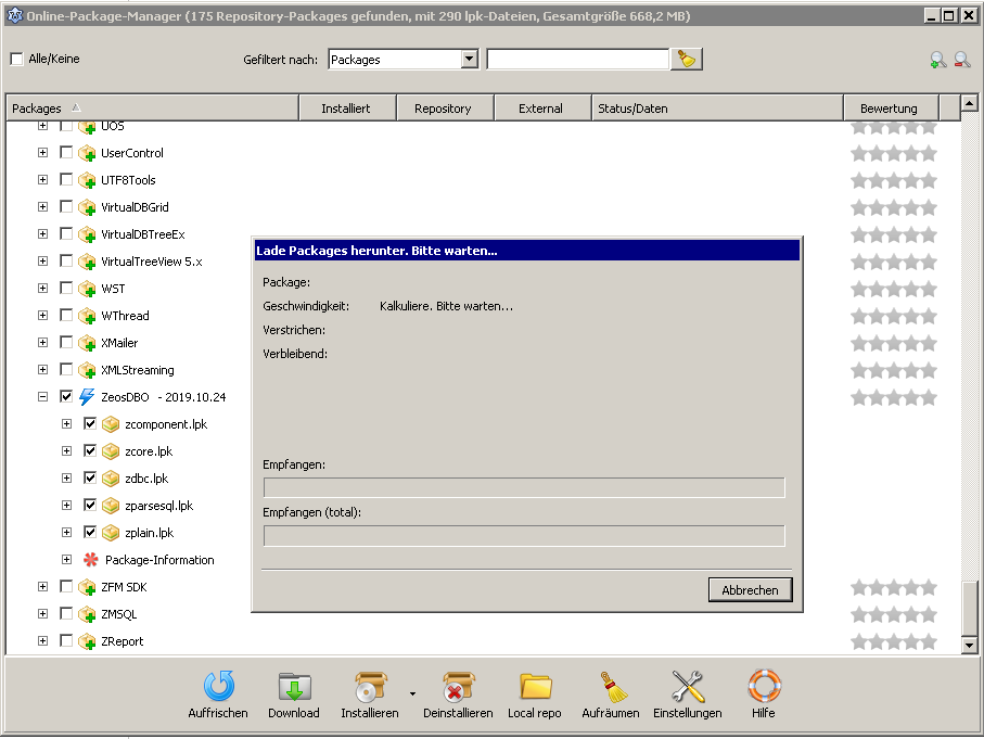 Im nächsten Schritt bin ich ebenfalls den den oben genannten Hinweis mit dem "Online Paketmanager" nach gegangen und habe versucht die Zeos Komponente darüber zu installieren: