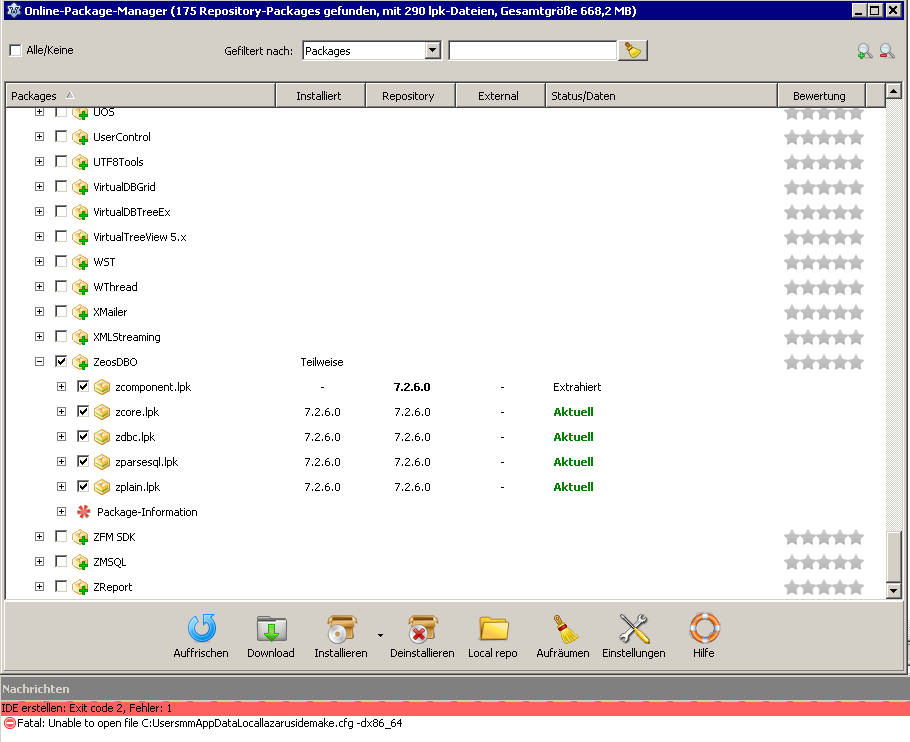 Ich kann die Zeos Komponente unter Lazarus leider nicht mehr installieren...