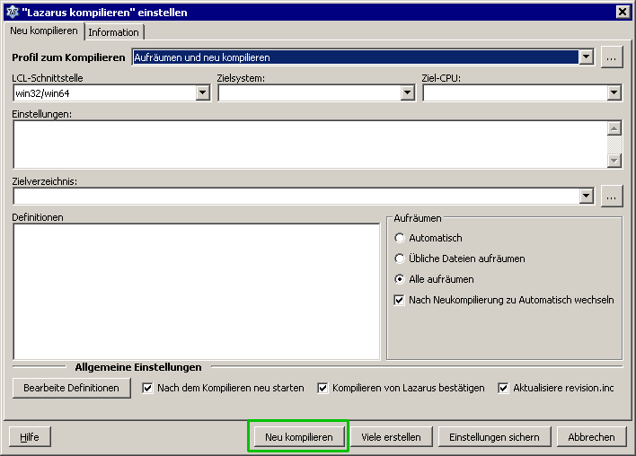Diese Vorgehensweise habe ich sicher schon 100 mal gemacht, nur ab dieser Lazarus Version kommt dieser Fehler. Dabei hatte ich extra bei der Installation von Lazarus angehakt, dass die bestehende (1.8.4er) Konfiguration gelöscht werden soll, so dass ich auch wirklich mit keinem "verbogenen" System neu starte.
