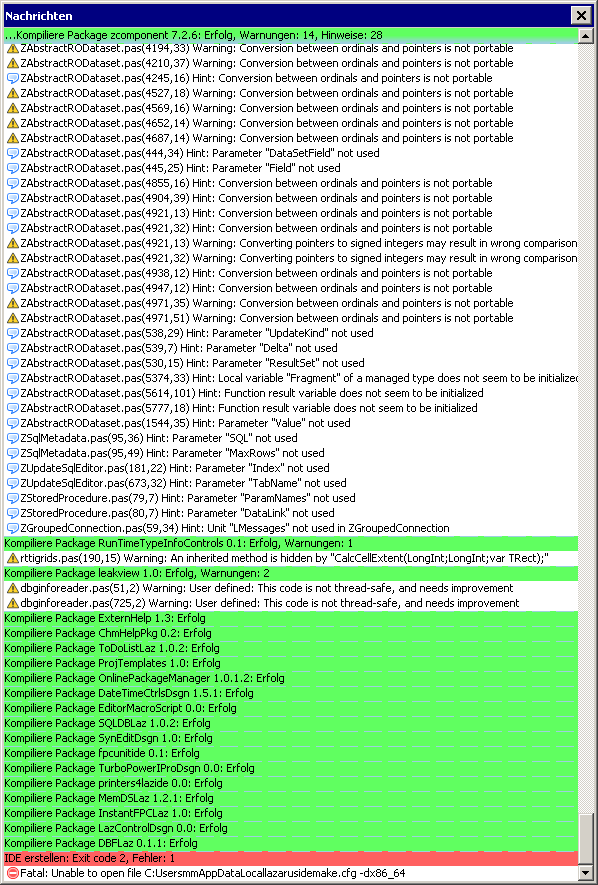 Übersetzt hat Lazarus alles, jedoch konnte die IDE immer noch nicht neu erstellt werden: