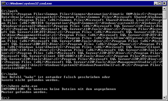 herausfinden welche make.exe in %PATH% als erstes gefunden wird