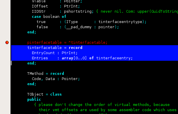 Es nervt ehrlich gesagt, dass wenn man eine Zeile markieren will (mit der Maus!!!) immer ein Haltepunkt erstellt wird. Es wäre besser wenn man den sensiblen Haltepunkt-erstellen-Bereich ganz an den linken Rand machen würde, aber nicht an den rechten Rand des linken Randes... 8ich hoffe das ist verständlich)