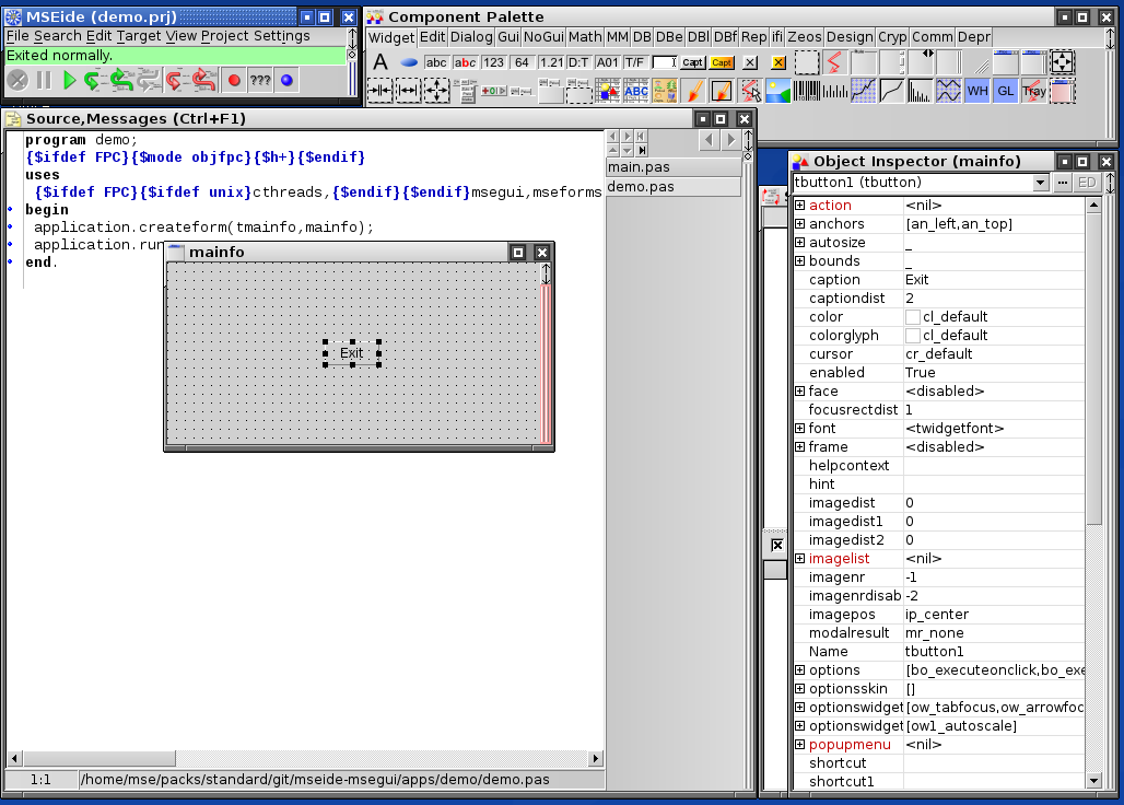 6. In 'Project'-'Open' select 'yourdirectory/msegui/apps/demo/demo.prj'.