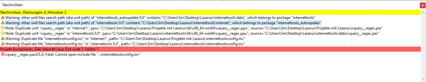 Trotzdem wird die Unit "Internettools" nicht gefunden.