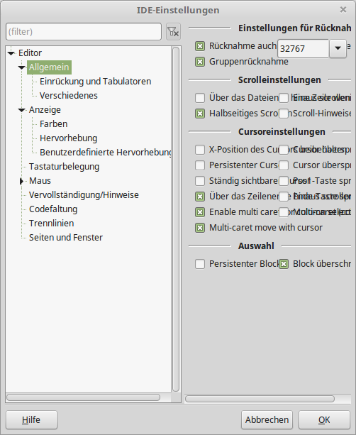 Die Seite mit den IDE-Einstellungen hat noch einen Design-Fehler.