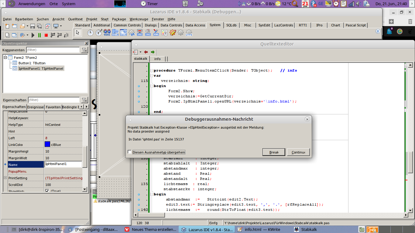 Ich möchte eine zweite Formöffnen und eine HTML Datei anzeigen. Auf der zweiten Form hab ich ein IpHtmlPanel.