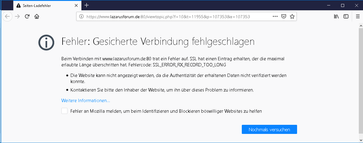 Lösche ich :80 aus der URL, komme ich ins Forum.