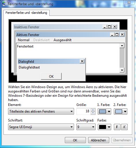 - unten auf "Fensterfarbe"