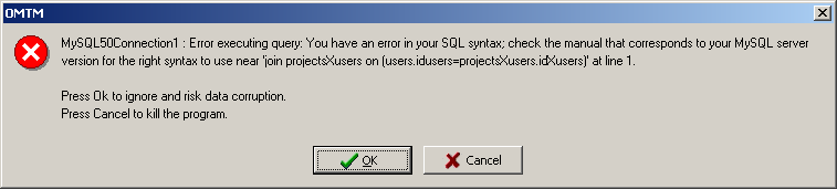 edit: ich hab jetzt mal die where clause weggelassen. Gleiches Ergebnis. Er mag den join nicht. Komischerweise funktioniert im MySQLQueryBrowser alles problemlos. MySQL kommt also eigentlich mit der Syntax klar. Welche alternativen Komponenten könnte ich denn benutzen?