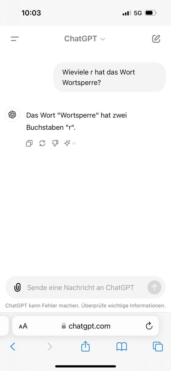 Intelligenz habe ich den Dingern wirklich nie unterstellt. Aber erwartet, dass es eine gewisse "Nützlichkeit" gäbe - das war ein Fehler. Echt schlecht, die Dinger ...six1 hat geschrieben: So 23. Jun 2024, 11:12 Demnach kann man wohl festhalten, dass die These: "ChatGPT gut für einfache Sachen" an der Realität gescheitert ist und unterstellen, dass dort nichts "intelligentes" am Werk ist.