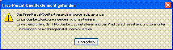 Mach' doch einfach, was da steht: Einstellungen->Einstellungen und dann unter FPC-Quellenverzeichnis die Quellen manuell suchen.