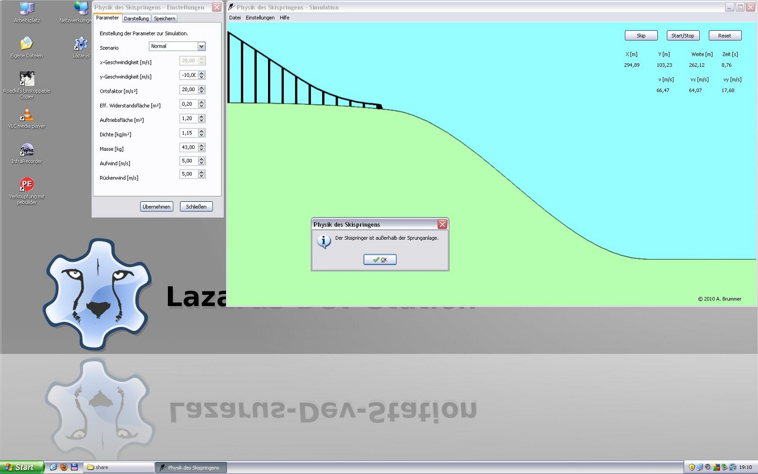 Physik des Skispringens ist ein Programm, mit dem man Skisprünge simulieren kann um so die dahinterstehende Physik zu verstehen.