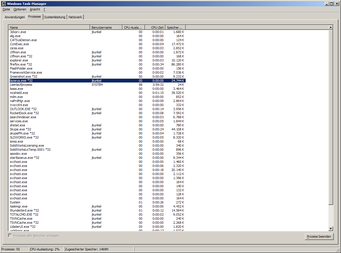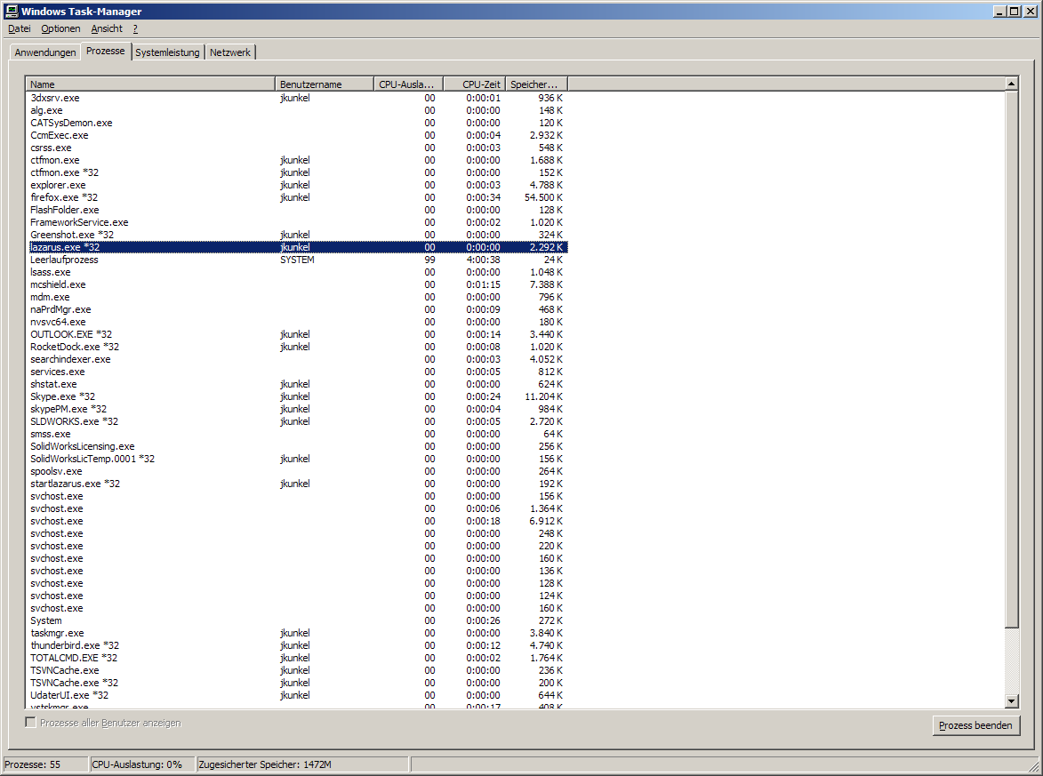 - ein weiterer Prozess wird gestartet (CAD, Lazarus, Taskmanager, OpenFile-Dialog, ...)