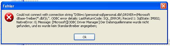 ich bekomme beim Versuch eine dBase-Datei mit SQL anzubinden folgende Fehlermeldung: