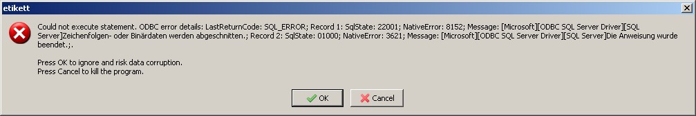 "Zeichenfolge oder Binärdaten werden abgeschnitten"