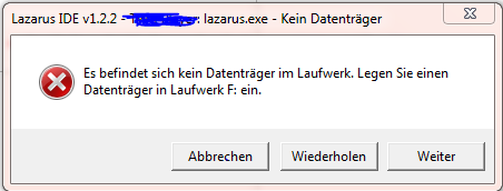Lazarus erfindet wohl kaum ein Laufwerk F: ohne Grund.