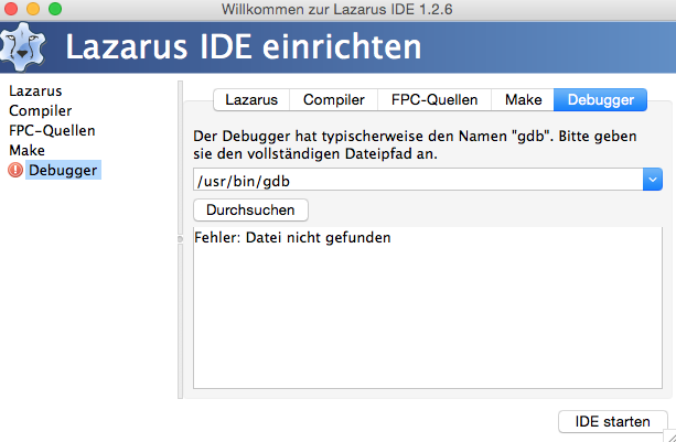 Problem beim starten von Lazarus