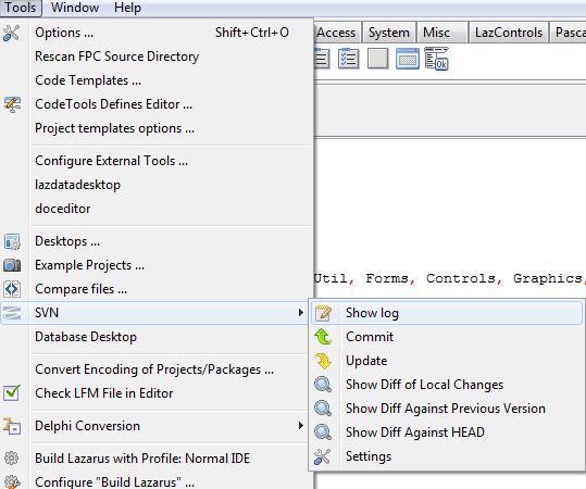 Siehe http://wiki.freepascal.org/LazSVNPkg