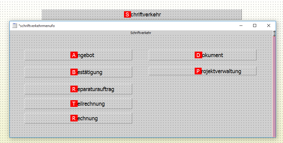 wählt der Anwender "Schriftverkehr", (egal ob durch Shortcut "S", Auswahl per Cursortaste oder anklicken mit der Maus, soll es etwa so aussehen. (Es wäre auch gut, wenn der Button aktiv bleibt)