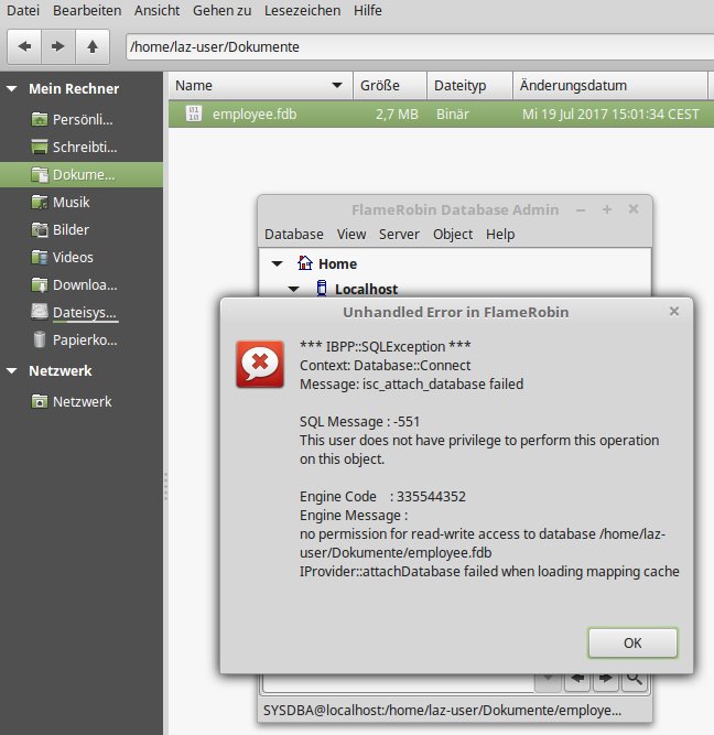Da alles unter "Mint 18.1" schon mal lief, muss ich irgend etwas übersehen haben.Unhandled Error in FlameRobin