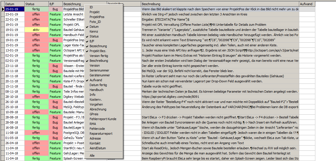 Mit Rechtsklick in die Titelleiste kommt immer ein automatisch generiertes Popup-Menü wo man sich die Spalten wählen kann. Und das neue berechnete Feld würde hier mit erscheinen, sowie das Original Feld.