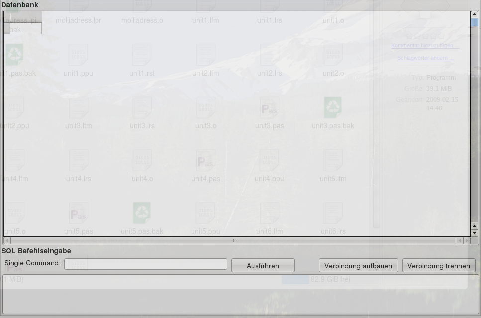 Habe nun seit längerem eine SQL Struktur im Kopf. Versuche sie umzusetzen aber habe einige Probleme, da es an meinem "Wissen" an SQL und deren Lazarus Programmierung mangelt. MolliAdress soll eine SQL Funktion erhalten, für solche die lieber eine SQL Datenbank haben möchten (MolliMyAdress); Muss am Anfang eine Verbindung zum SQL Server aufgebaut werden. Habe manuell einen neuen benutzer "myadress" und die Datenbank "myadress" mit der Tabelle Dazu "myadress" angelegt in MySQL. Das funktionierte gut. Nun will ich mit MolliAdress (MolliMyAdress) auf die Datenbank und Tabelle zugreifen, damit die Tabelle im DBGrid 2 angezeigt wird. (Wie üblich)