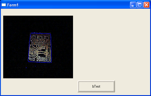 Ich hab jetzt von jeder Seite ne reihe Punkte und suche gerade nach eingebauten 2d Funktionen fürs skalarprodukt oder besser gleich ne dotprodct funktion, damit bilde ich dann den winkelmittelwert aller punkte auf einer seite von der mitte aus und habe so 4 Linien drumrumgelegt. An den schnittpunkten werden die zugeschnitten und ich hab einfach 4 punkte die die Konturen der leiterplatte kennzeichnen. Anhand der längen der "linien" sollte man in der lage sein rauszubekommen wie rum die leiterplatte jetzt liegt (hoff ich).