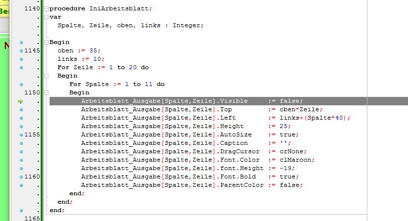 Dazu habe ich mir ein Array geschaffen vom Type TLabel. (Arbeitsblatt_Ausgabe : array[1..11, 1..20] of TLabel;)