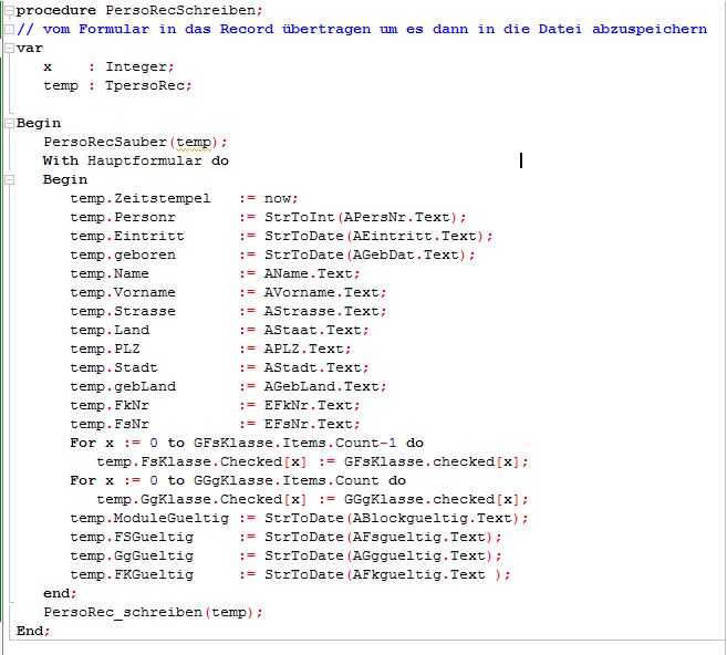 Procedure PersoRec_schreiben(PersoRec : TPersoRec);