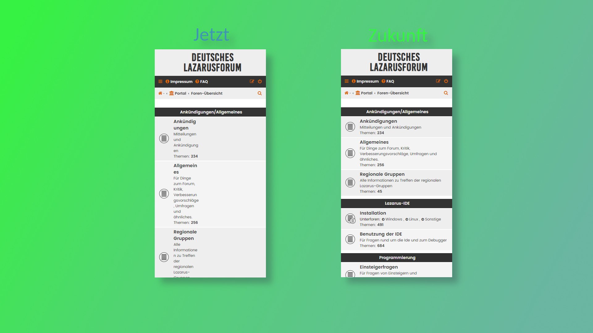 Sowohl der Bug, als auch die unnötigen Leerzeilen bei den "Globalen Bekanntmachungen" scheinen behoben zu sein.m.fuchs hat geschrieben: So 15. Dez 2024, 01:36 Es gab heute Nacht ein Update des Forums, könnten bitte mal mehrere Leute bestätigen dass dieser Bug im Layout nicht mehr auftritt?