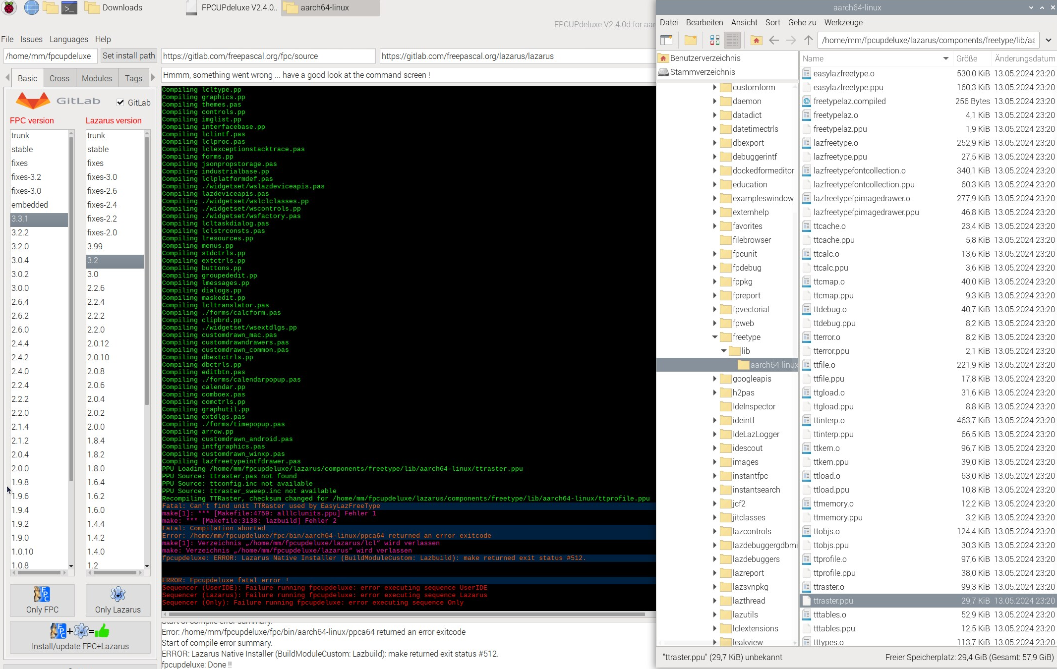 Recompiling TTRaster, checksum changed for /home/mm/fpcupdeluxe/lazarus/components/freetype/lib/aarch64-linux/ttprofile.ppu