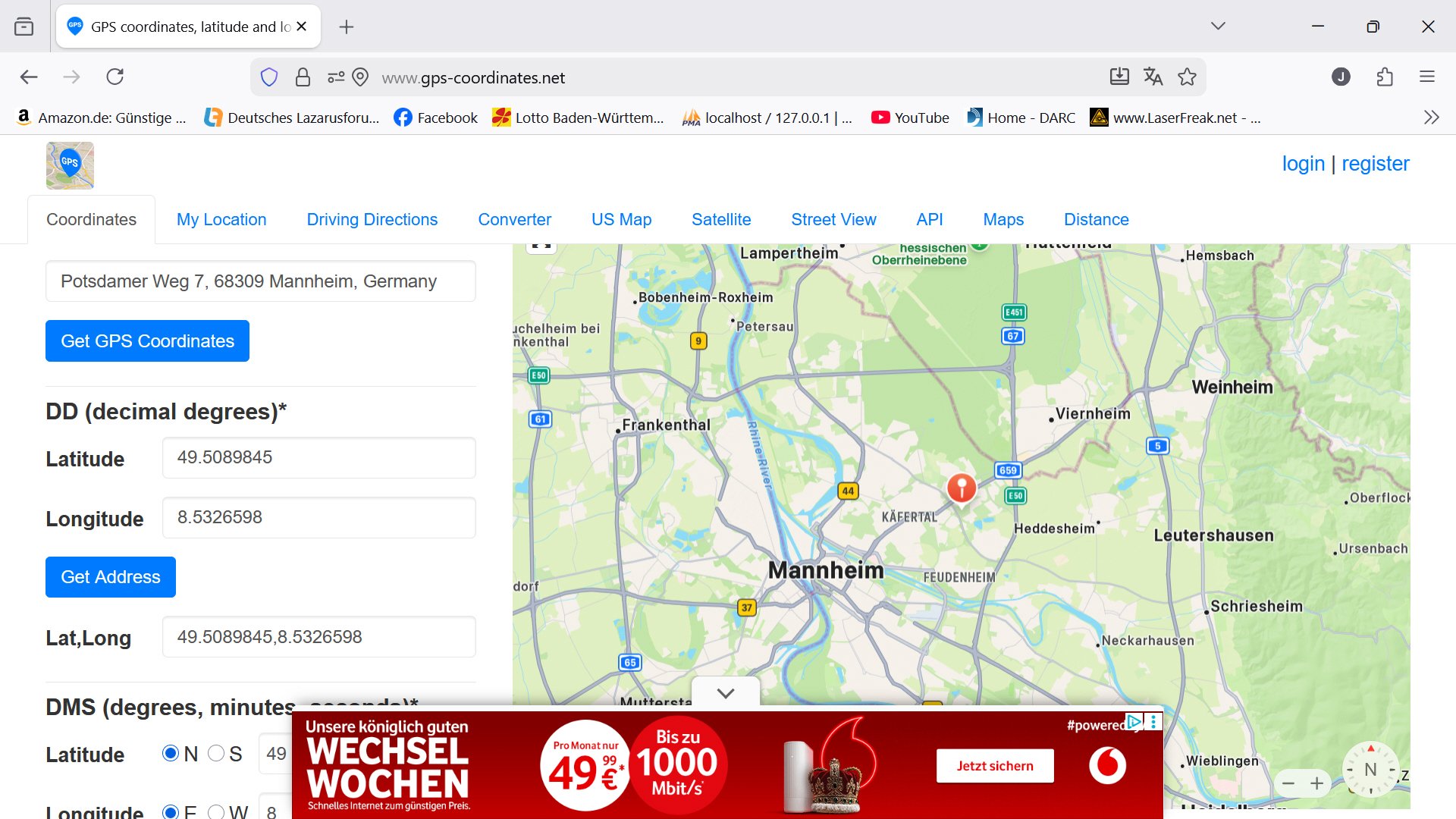 Internetseite: https://www.gps-coordinates.net/