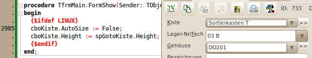 Ich musste in der Linux-Version TForm.Font.Size := 8 setzen, damit einigermassen die Steuerelemente passen. (Tut es dann auch, nur macht da die Combo-Box Probleme >> Folglich BUG)