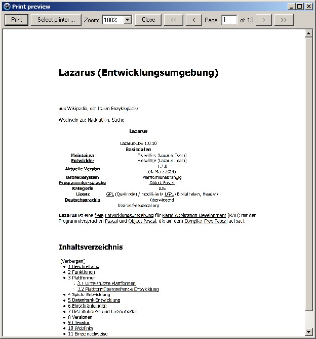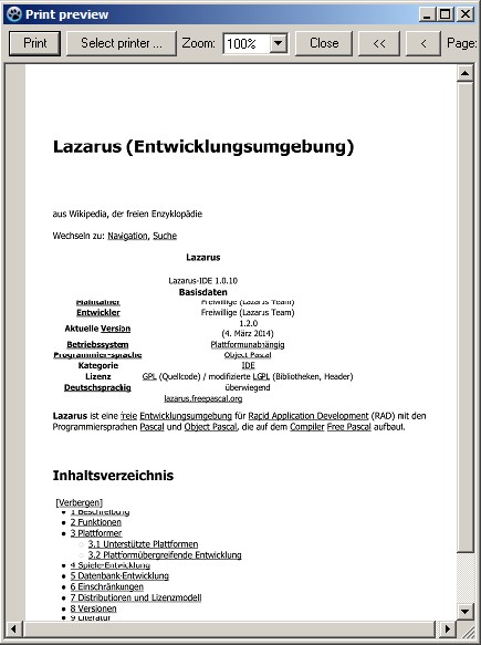 Kannst Du dafür ein Minimalbeispiel erstellen?! Ich habe eben das Drucken per Preview probiert und es funktioniert bei mir problemlos - mehrere Seiten, ohne ungewöhnliche Umbrüche (Laz.1.2 32bit unter Win7 64bit).