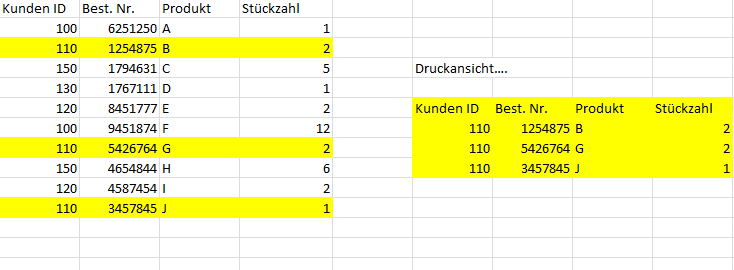 Anhand einer Kunden ID (Auswahl per LookUpCombobox) möchte ich später mir alle Zeilen die mit dieser ID anfangen ausdrucken (Mit dem Bild im Anhang vielleicht besser zu verstehen).