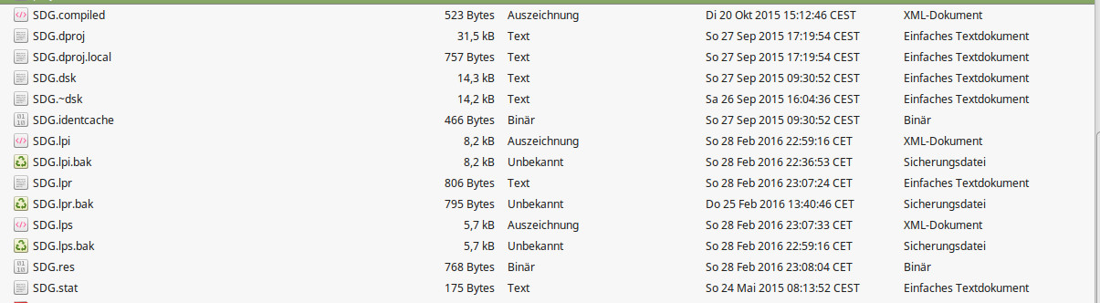 Wenn ich mir aber die Projektdatei im Verzeichnis anschaue, dann finde ich das auf dem Bild. Ich habe gerade einen Kommentar in die Projektdatei eingefügt und diese gespeichert.