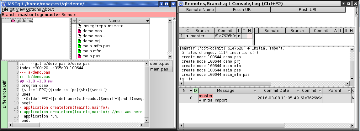 im Projektverzeichnis alles was es braucht. Wie es mit MSEgit geht habe ich ja bereits geschildert. Wenn man danach git lediglich als "Unfallversicherung" verwendet, gibt es nicht viel zu lernen. In MSEgit beschränken sich die Aktionen auf 'git'-'Commit all' und gegebenfalls RightClick-'Restore' auf der versehentlich geänderten Datei oder dem Verzeichnis und gelegentlich RightClick-'Add' um neue Dateien aufzunehmen.