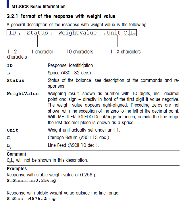 Commands sent to the balance comprise one or more characters of the ASCII character set.