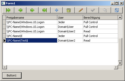 Die Verbindung zu Datenbank habe ich hinbekommen. Meine Freigaben werden per Shellexecute Befehl ausgelesen und in eine .txt - Datei gespeichert.