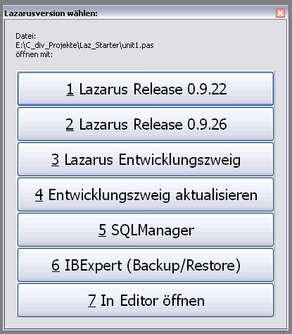 Alternativ kann der Starter direkt gestartet werden, und stellt so ebenfalls alle Lazarusversionen zur Verfügung.