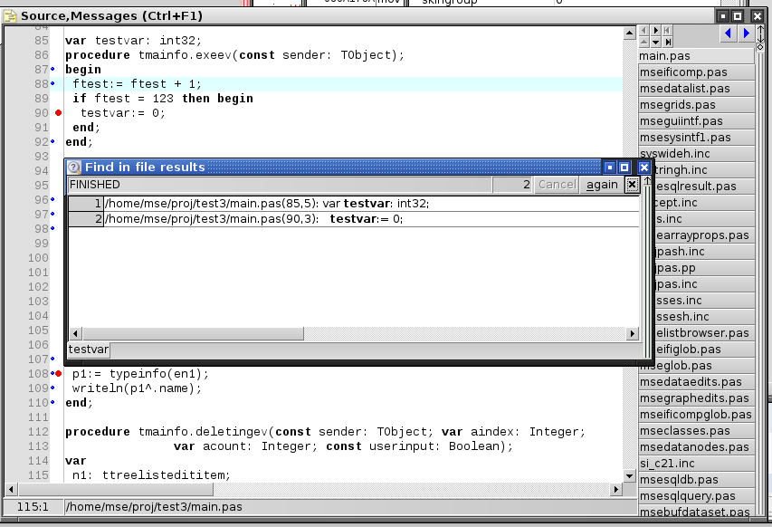 - Das Programm kann jetzt forgesetzt werden; sobald die Variable i den gewünschten Wert (22) angenommen hat, wird das Programm wieder unterbrochen und man kann wieder Schritt für Schritt weiter debuggen.