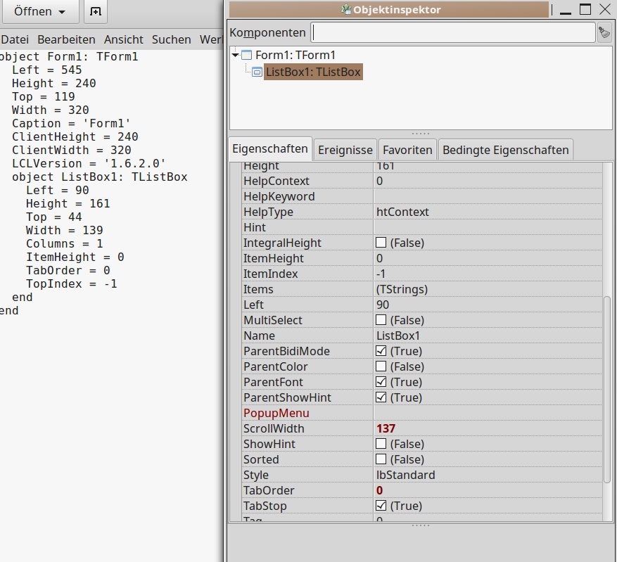 Dann habe ich die unit1.lfm mit einem Texteditor geöffnet und dort steht kein Scrollwidth drin, d.h. Scrollwidth ist 0.