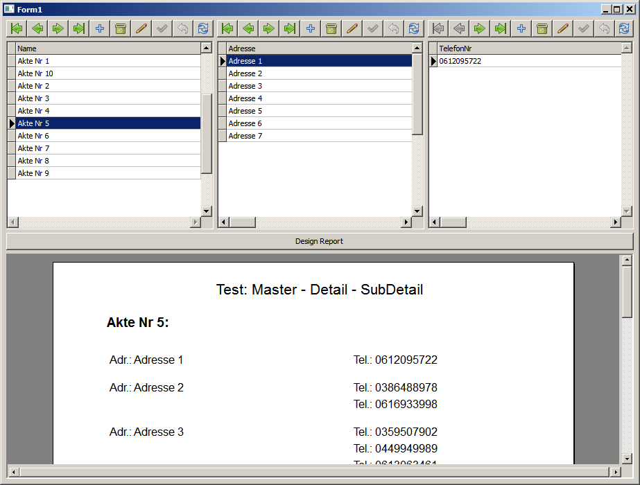 d.h. Im Subreport1 lege ich die Felder der Detailtabelle (Adressen) ab und im Subreport2 die Felder der SubDetailtabelle (hier Telefonnummern)