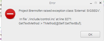 Ich habe das aber erstmal ignoriert und mich weiterhin dem Layout von Form3 gewidmet da ich da gerade geistig in diesem Thema drin war -> kompiliert weiter einwandfrei, aber nach Start des Programms erscheint nun zunächst die leere(!) Form1, um dann mit einem SIGSEGV abzustürzen: