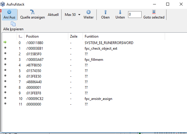 Diese fehler treten dann beim verlassen von funktionen auf (wenn der fpc versucht deinen kaputten string aufzuräumen), daher ist es ganz tief in den FPC internals, weshalb der stacktrace fürn arsch ist.