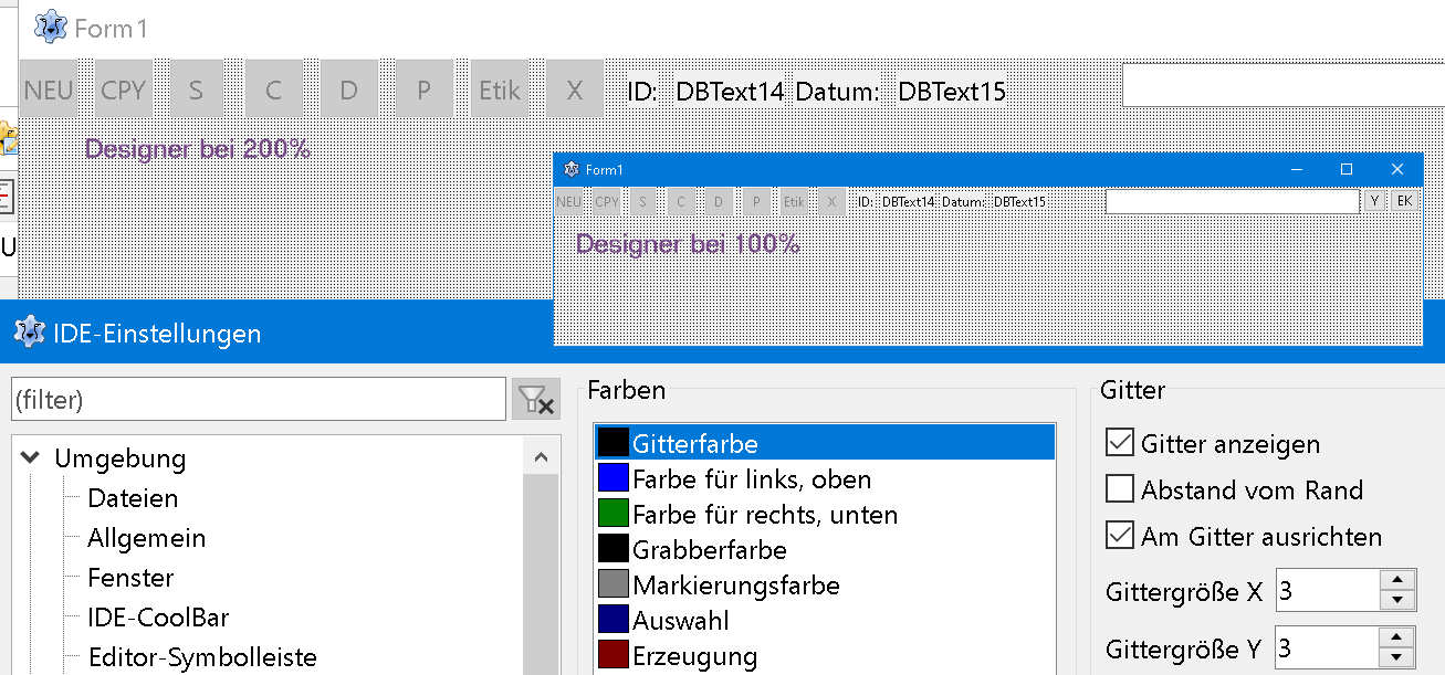 In meinem Quellcode gehe ich davon aus, dass zur Zeit der Übersetzung die Skalierung vom Windows 96 DPI ist. Wenn dann die EXE mit einem anderen Windows mit 200% Skalierung gestartet wird, dann sieht alles gut aus.