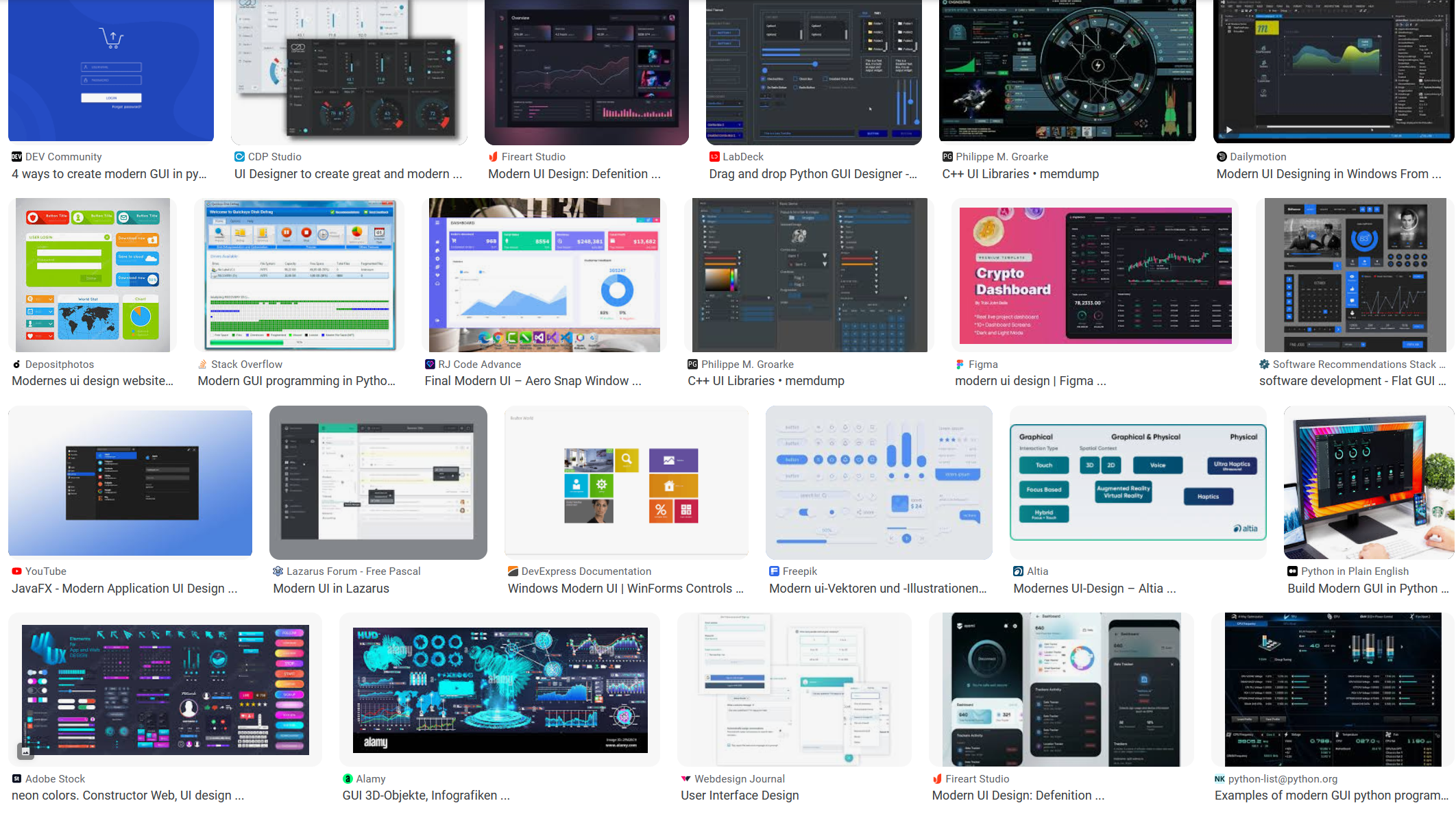 Also "modern" = schwarz?Niesi hat geschrieben: Mo 1. Jan 2024, 12:01 Und zu "moderner" GUI: in google "moderne GUI" eingeben und auf "Bilder" klicken. Da ist alles dabei ...![]()
