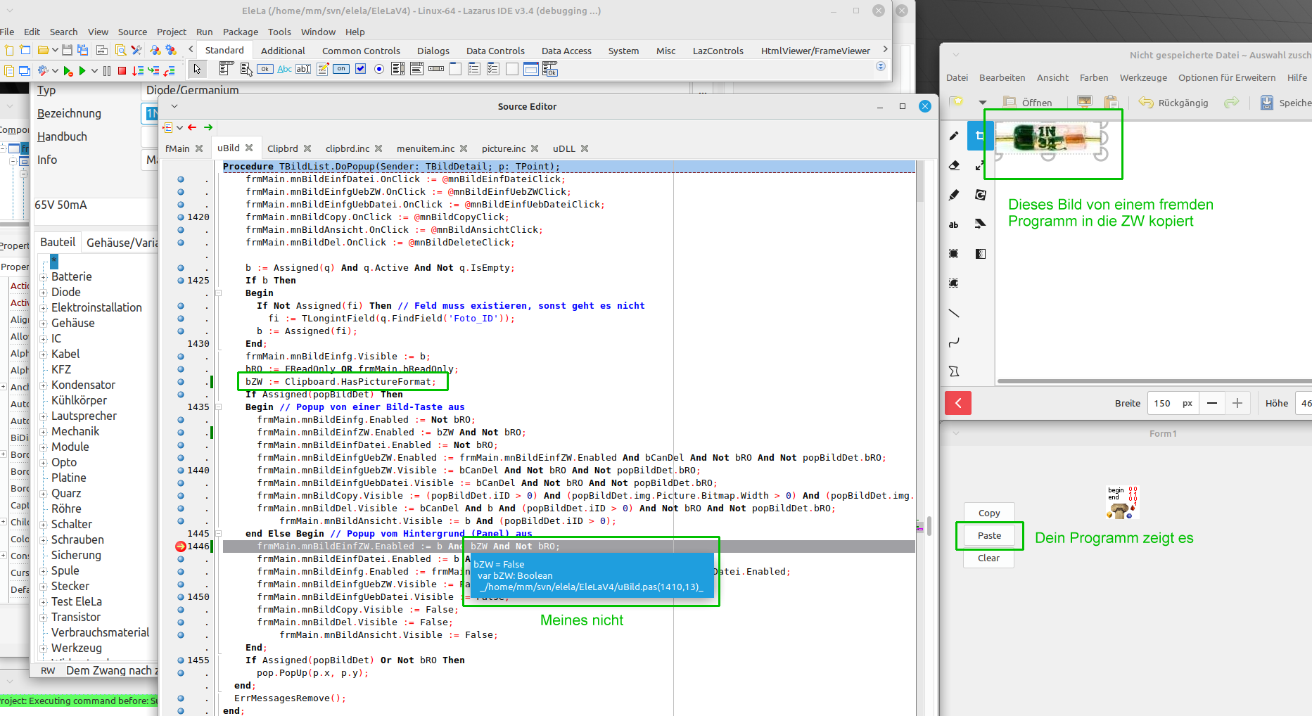 - mit einem anderen Programm eine Grafik in die ZW kopieren, dann merkt das meine EXE erst nach dem Neustart, dass da eine Grafik in der ZW ist >> Fehler.